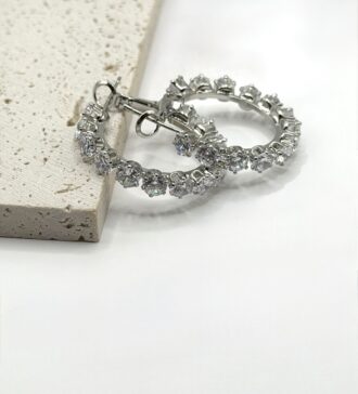 Με Κοπή Εντυπωσιακοί κρίκοι στολισμένοι με λαμπερά κρυσταλλάκια cubic zirconia που χαρίζουν κομψότητα και λάμψη σε κάθε σας εμφάνιση. Ο διαχρονικός σχεδιασμός τους τους καθιστά ιδανικούς τόσο για καθημερινή χρήση όσο και για πιο ιδιαίτερες περιστάσεις. Υλικό: Επιμεταλλωμένο κράμα σε απόχρωση ασημιού Στολισμός: Διάφανα κρυσταλλάκια cubic zirconia Κούμπωμα: Ασφαλές κλιπ για σταθερή εφαρμογή Μία elegant…