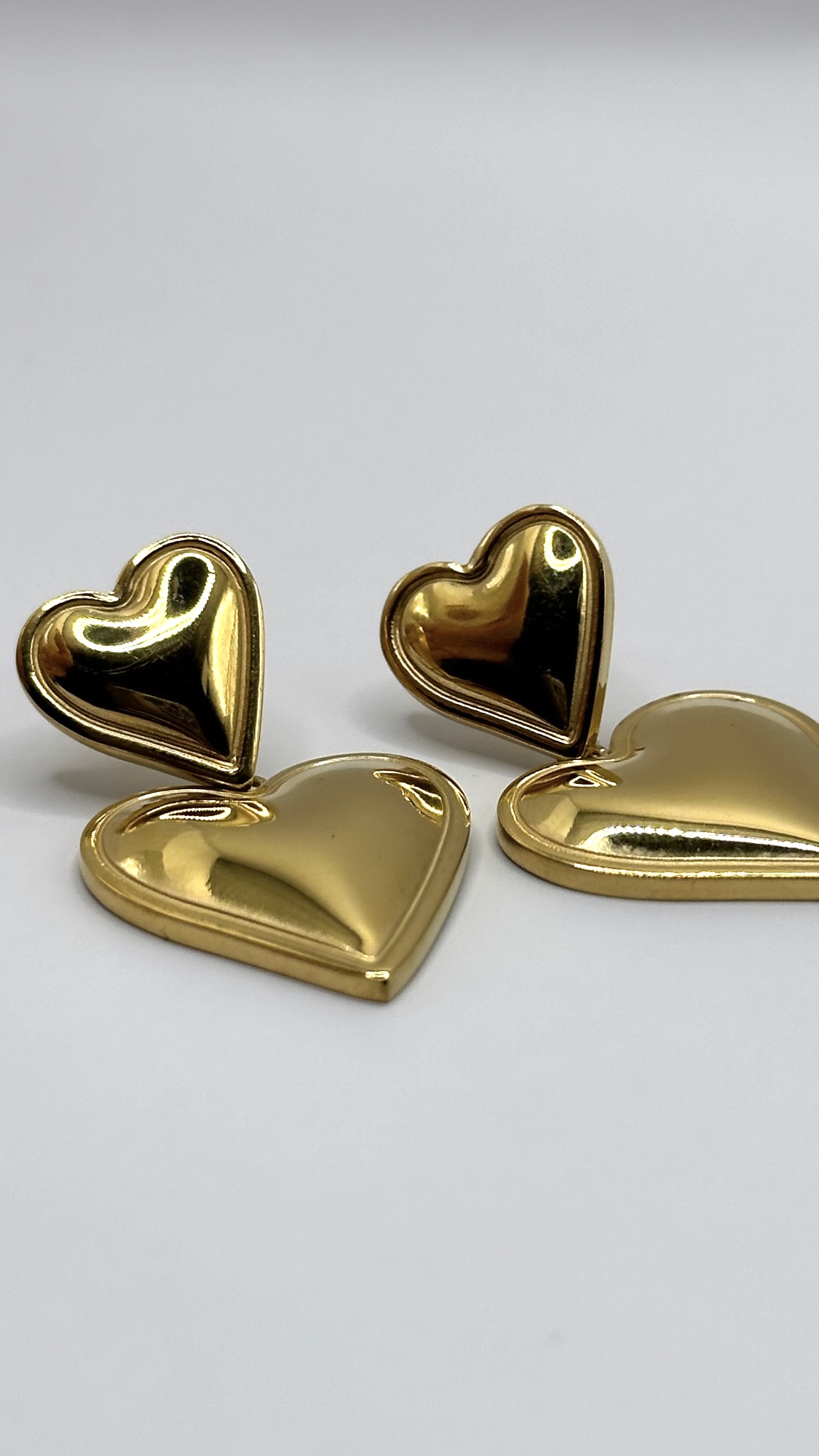 Μοντέρνα σκουλαρίκια σε σχήμα καρδιάς από ανοξείδωτο ατσάλι, που συνδυάζουν χρυσό και ασημί τόνο. Ο ρομαντικός τους σχεδιασμός με το παιχνιδιάρικο twist τα κάνει ιδανικά για κομψές αλλά και statement εμφανίσεις. Διατίθενται επίσης σε ολόχρυση εκδοχή για ακόμα πιο εντυπωσιακό look.