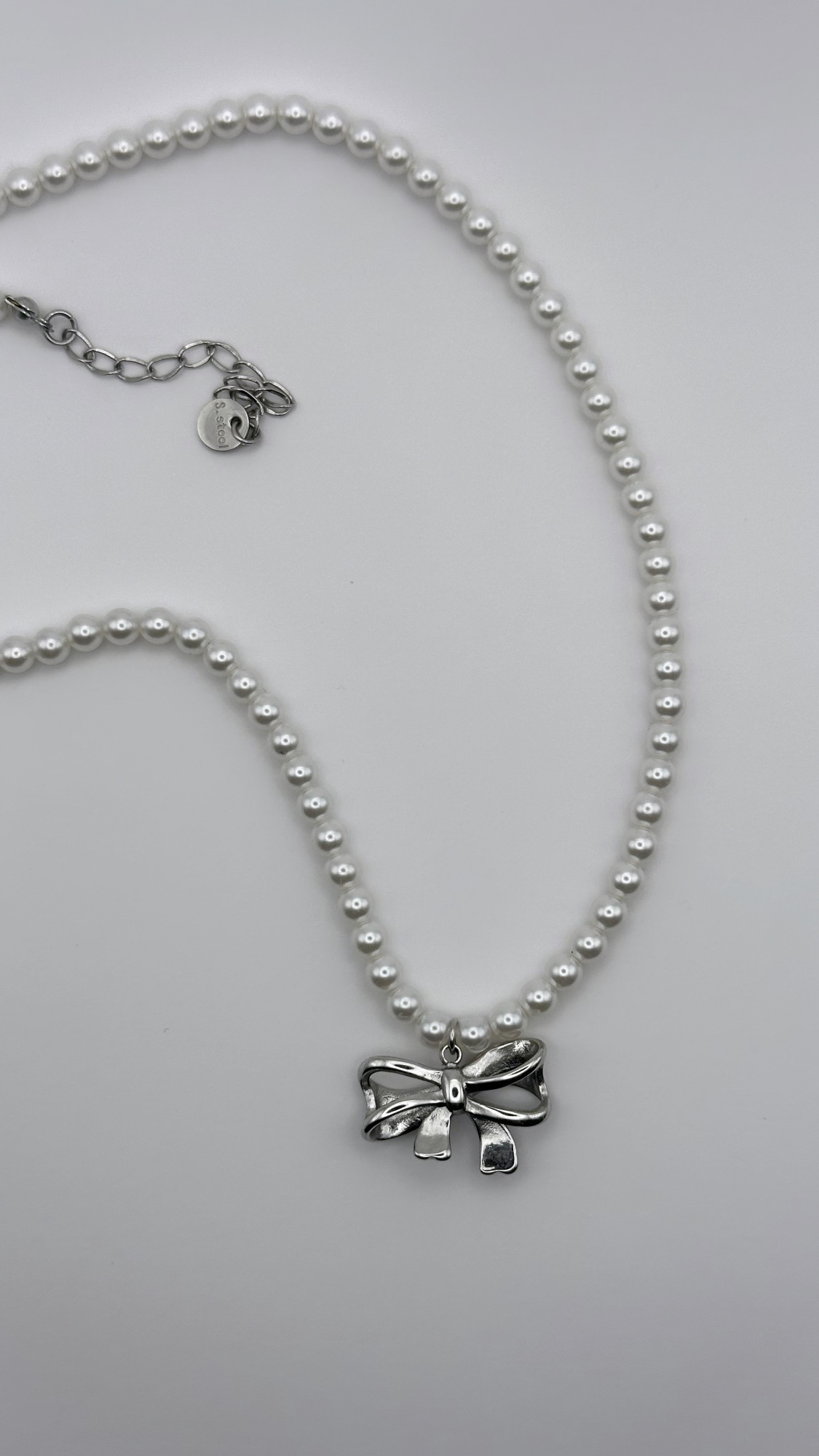 - Κολιέ από ατσάλι με λευκές πέρλες