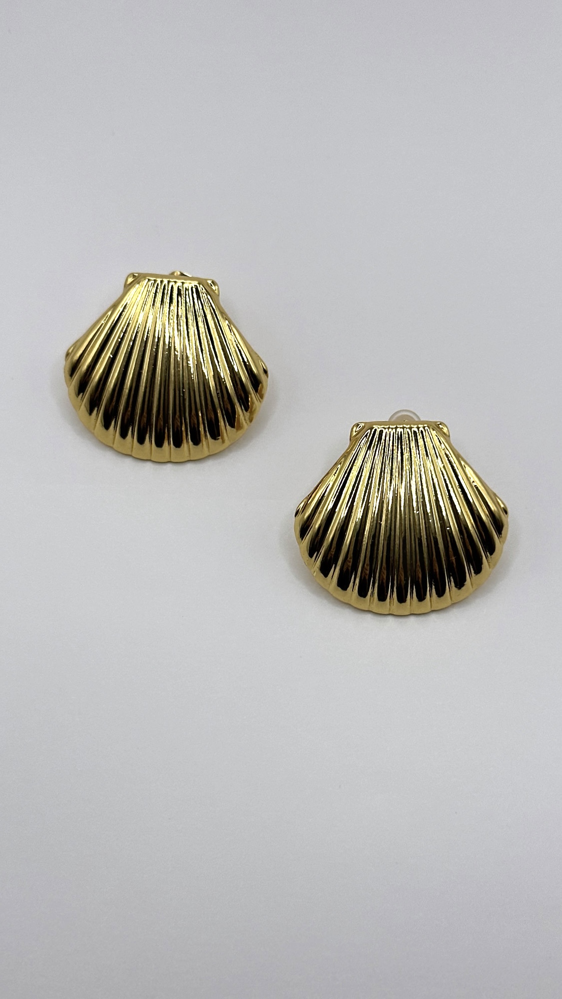 Σκουλαρίκια από ανοξείδωτο ατσάλι σε χρυσό χρώμα, σε σχήμα κοχυλιού. Ένα σχέδιο εμπνευσμένο από τη θάλασσα και το καλοκαίρι, ιδανικό για να δώσει λάμψη και νησιώτικη αύρα σε κάθε σου εμφάνιση.