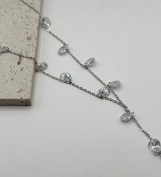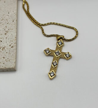 - Κολιέ από ατσάλι με χρυσά τετράγωνα στοιχεία