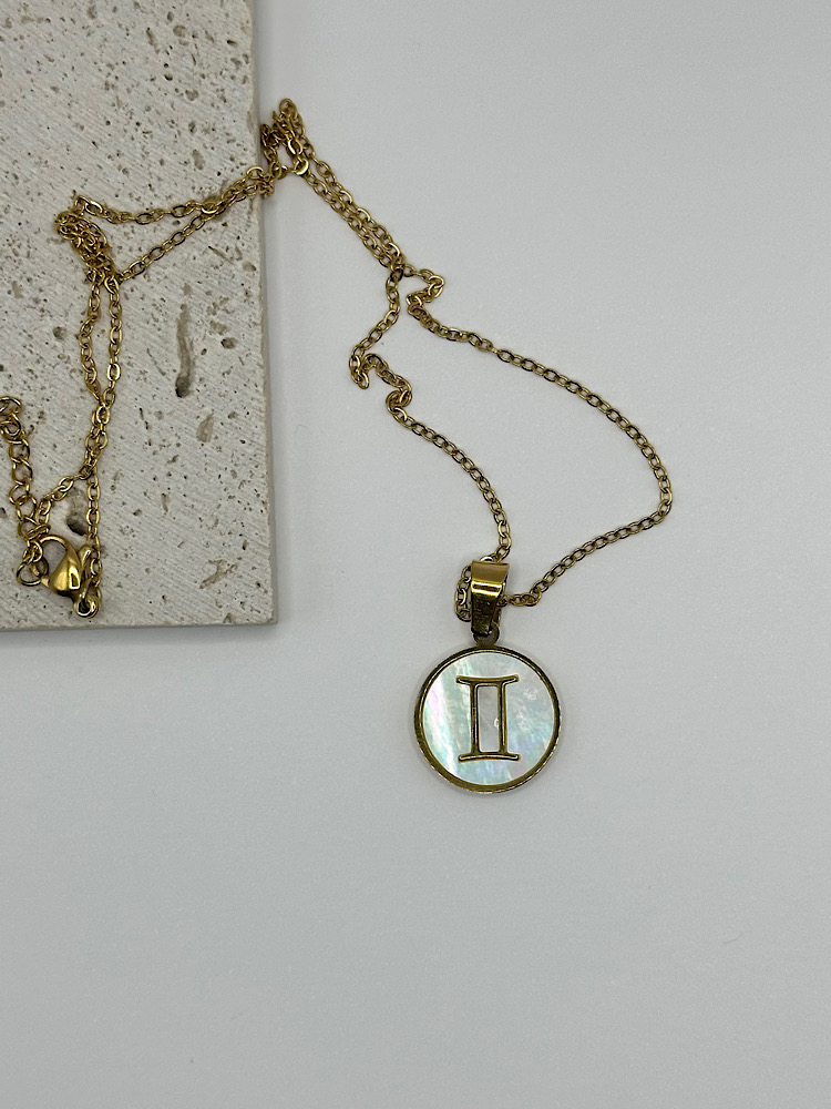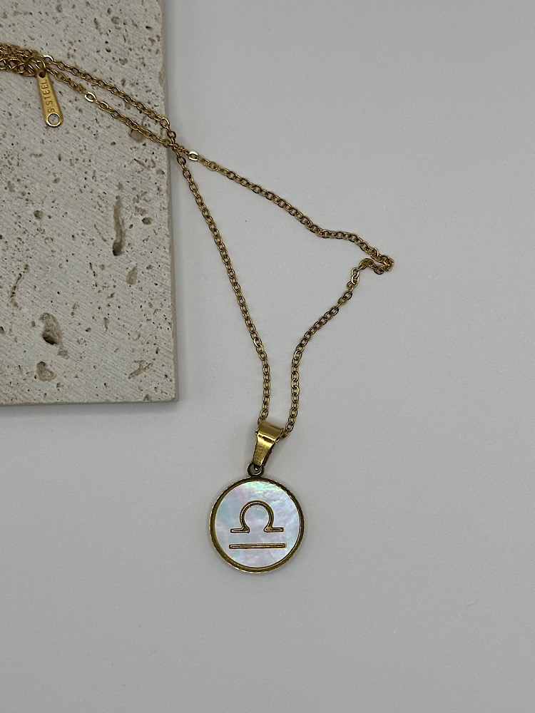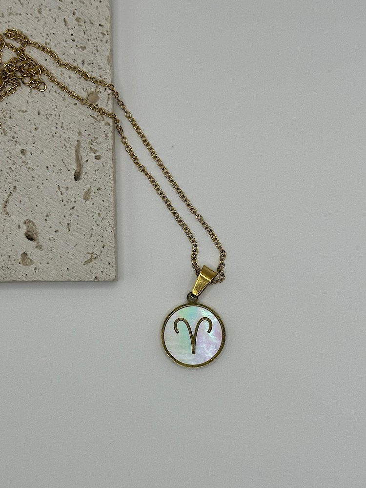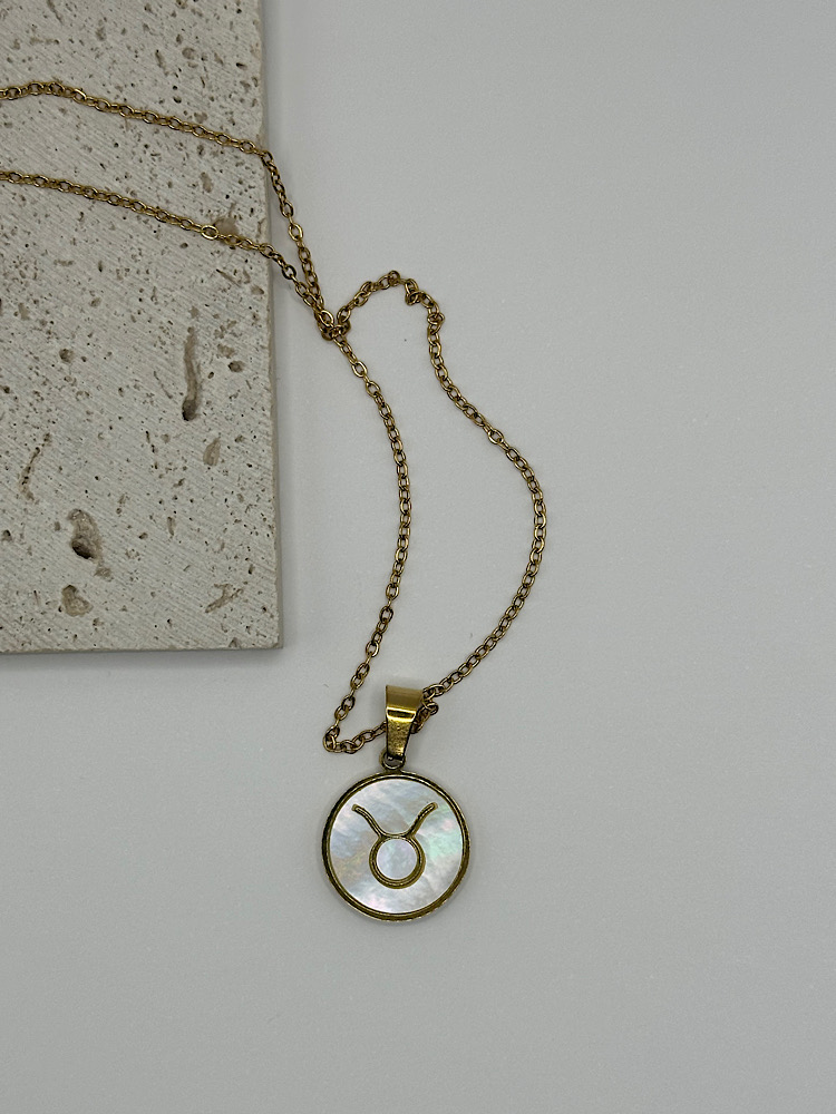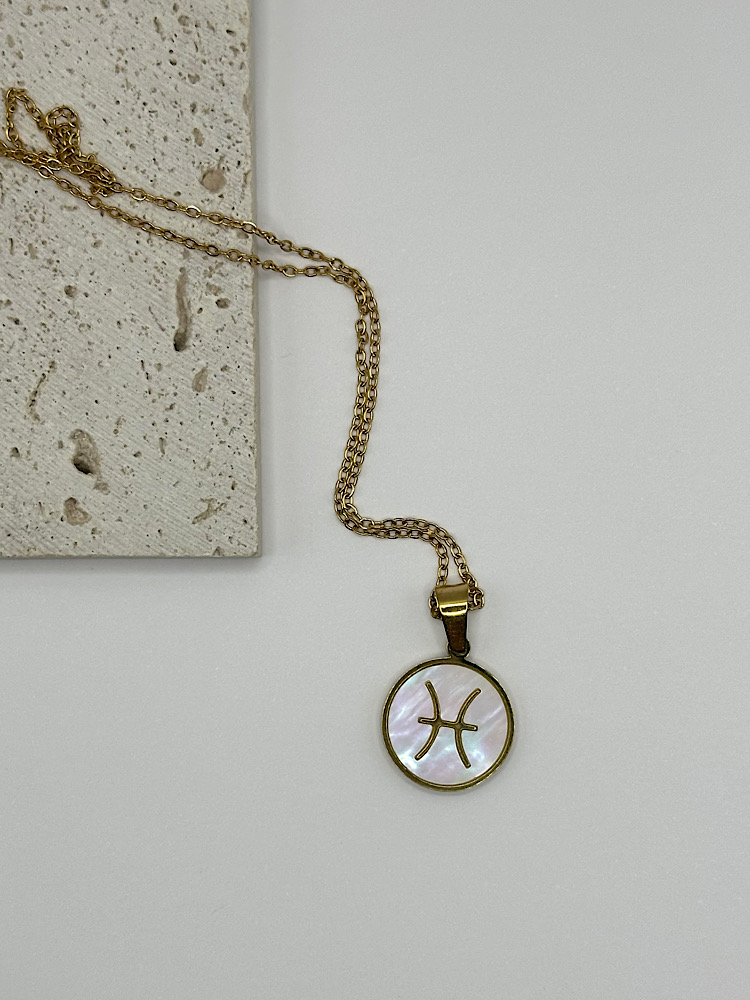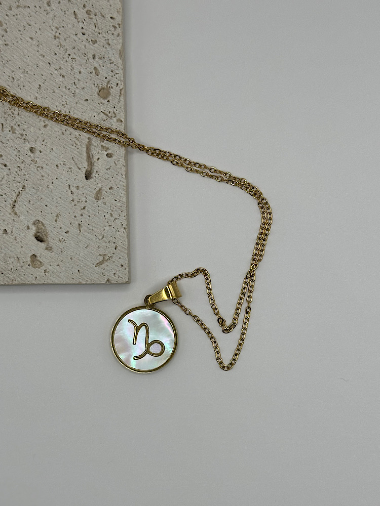 Μενταγιόν με το ζώδιό σας σε χρυσό τόνο, με φόντο από ιριδίζον όστρακο που χαρίζει διακριτική λάμψη και κομψότητα. Ένα προσωπικό κόσμημα που συνδυάζει στυλ και συμβολισμό, ιδανικό για να το φοράτε καθημερινά ή να το χαρίσετε σε κάποιο αγαπημένο πρόσωπο.