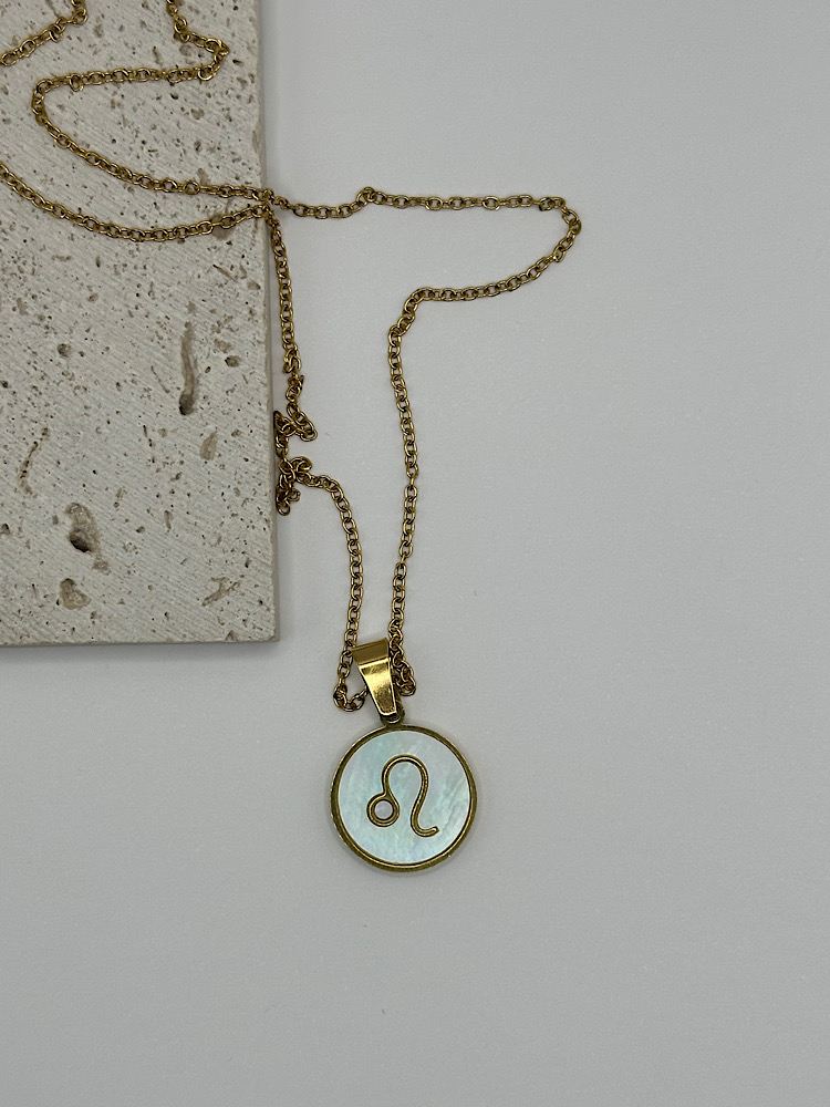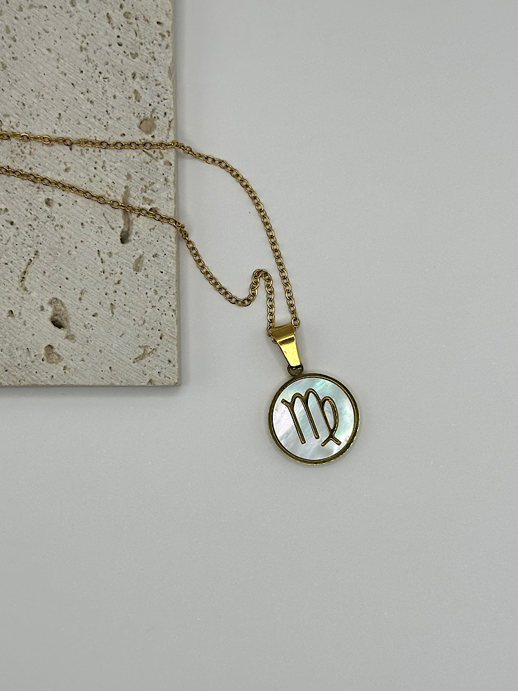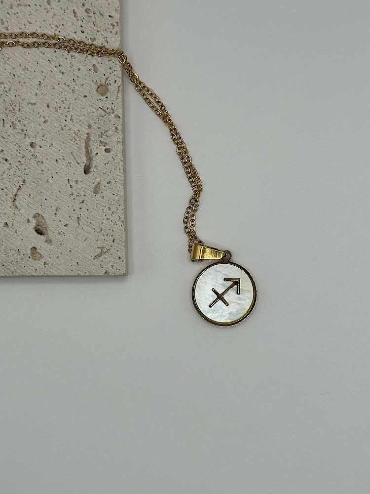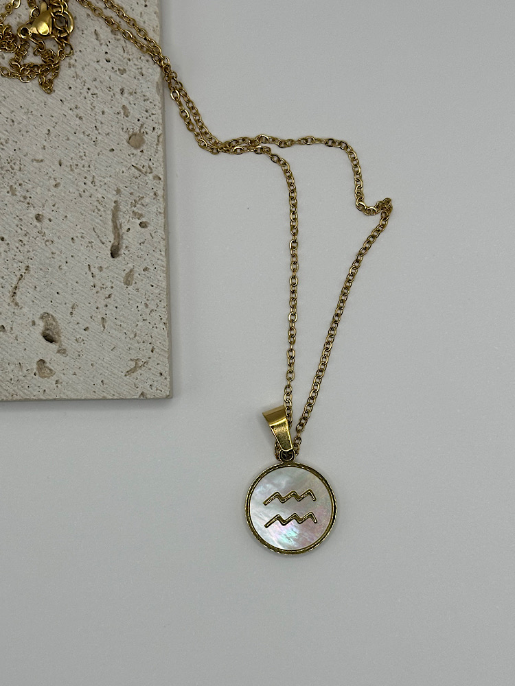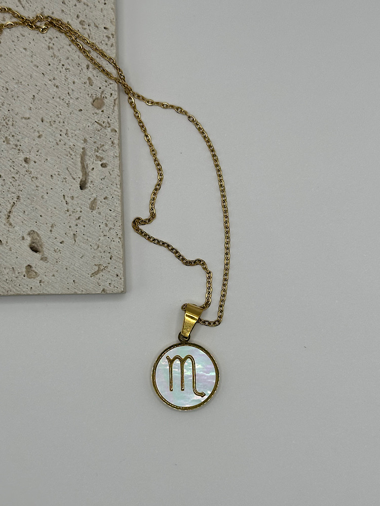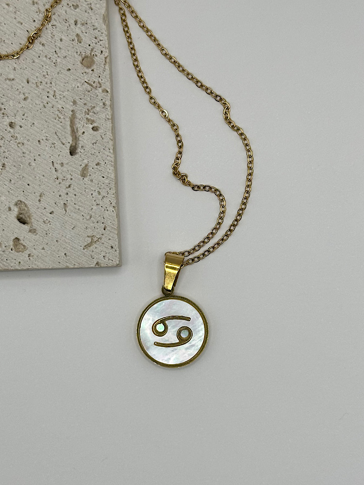 Μενταγιόν με το ζώδιό σας σε χρυσό τόνο, με φόντο από ιριδίζον όστρακο που χαρίζει διακριτική λάμψη και κομψότητα. Ένα προσωπικό κόσμημα που συνδυάζει στυλ και συμβολισμό, ιδανικό για να το φοράτε καθημερινά ή να το χαρίσετε σε κάποιο αγαπημένο πρόσωπο.