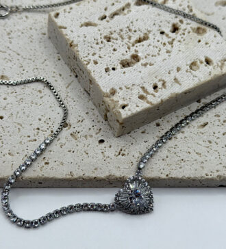 Ένα εντυπωσιακό κολιέ που μαγνητίζει τα βλέμματα. Το μενταγιόν σε σχήμα καρδιάς είναι διακοσμημένο με λαμπερές πέτρες που αναδεικνύουν την κομψότητα και τη θηλυκότητα του κοσμήματος. Η λεπτομερής του κατασκευή προσδίδει πολυτέλεια και ρομαντισμό, αποτελώντας ιδανική επιλογή για ξεχωριστές εμφανίσεις. ✨ Χαρακτηριστικά Κολιέ με μενταγιόν σε σχήμα καρδιάς Διακοσμημένο με λαμπερές πέτρες Κομψό και πολυτελές…
